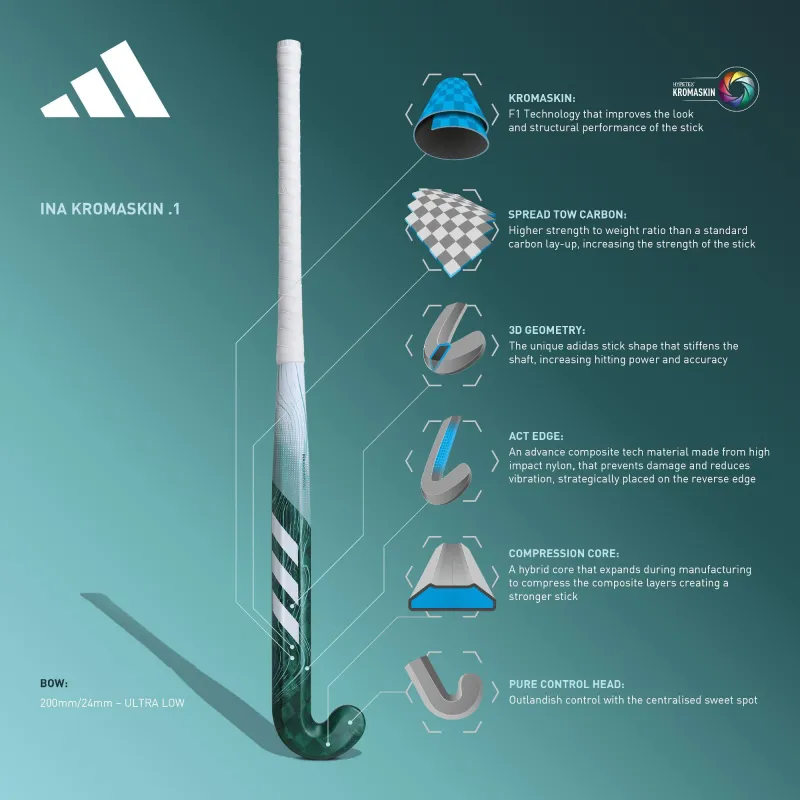 The Ina Kromaskin .1 is loaded with cutting edge technology, including Hypetex Kromaskin, and is engineered to be the stiffest and therefore most powerful stick within the Ina franchise. The pure control head allows the player to take control of all aspects of the game.